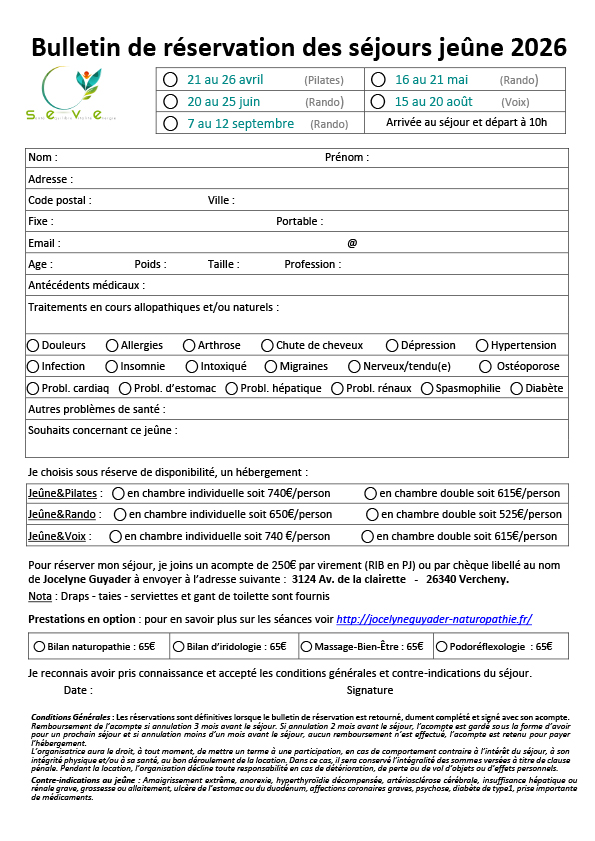 Télécharger le bulletin de Réservation 2026